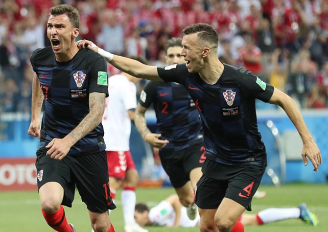 7月1日,在下诺夫哥罗德进行的2018俄罗斯世界杯足球赛八分之一决赛中,克罗地亚队对阵丹麦队。
