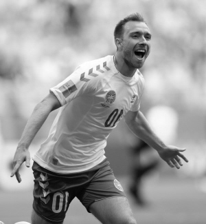 图为丹麦队球员埃里克森在进球后庆祝。新华社发