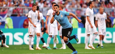 俄罗斯开场试图以硬朗打法压制对手,但乌拉圭的经验更胜一筹,卡瓦尼多次向裁判施压,提醒裁判注意东道主的动作。第9分钟,俄罗斯防守队员本方禁区前犯规,苏亚雷斯主罚任意球右脚劲射打穿人墙,从近角飞进球门。本届世界杯已有6个直接任意球进球,是上届的两倍。