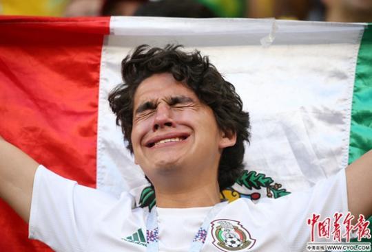 墨西哥队惜败巴西队无缘八强,哭泣的墨西哥球迷。