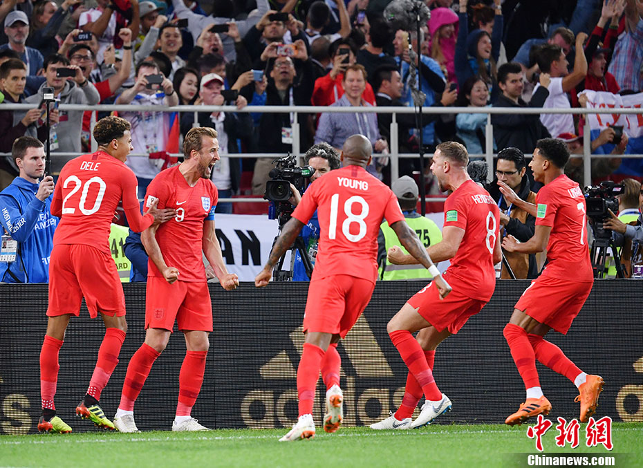 点球大战第一轮,法尔考和凯恩的点球分别命中;随后夸德拉多和拉什福德同样再次命中,前两轮双方打成2:2;第三轮穆里尔将球罚进,但是亨德森的射门却被哥伦比亚门将扑出;第四轮哥伦比亚队乌里贝的射门打在横梁上弹出,特里皮尔将球罚进,两队战成4:4;最后一轮巴卡的射门被门将扑出,英格兰队戴尔命中,最终英格兰点球大战4:3战胜对手,总比分5:4艰难晋级八强。 中新社记者 毛建军 摄