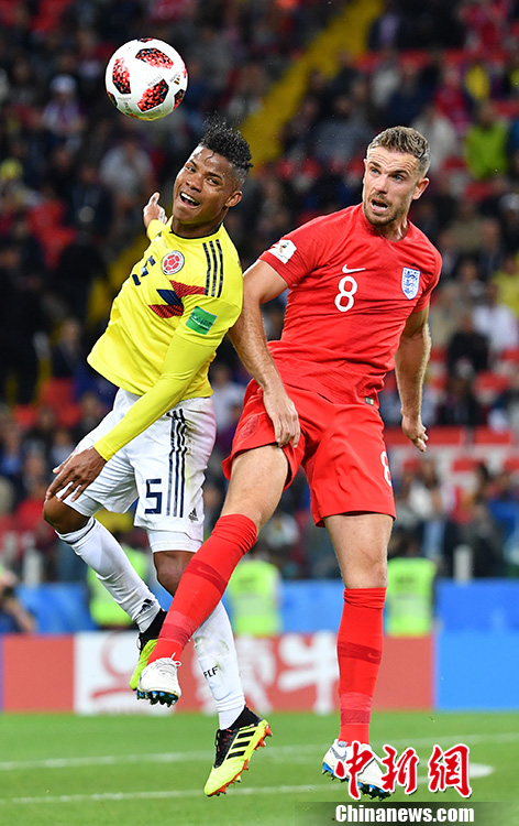 在莫斯科进行的2018俄罗斯世界杯足球赛八分之一决赛中,哥伦比亚队对阵英格兰队。