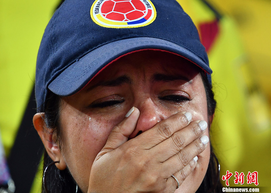 哥伦比亚球迷难掩悲伤。 中新社记者 毛建军 摄