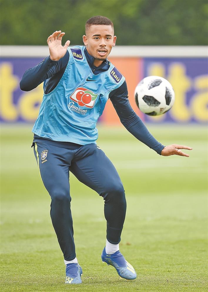 6月3日巴西与克罗地亚的友谊赛上,1997年出生的巴西球员热苏斯以国家队队长身份首发出场,这位效力于英超冠军曼城队的球员成为巴西历史上第六年轻的队长。要知道四年前,热苏斯还在一边踢球、一边粉刷街道赚钱,抽空才能从电视上看到偶像内马尔征战世界杯。如今,他已与昔日偶像携手并肩,一起为球衣上的第六颗“金星”并肩作战。