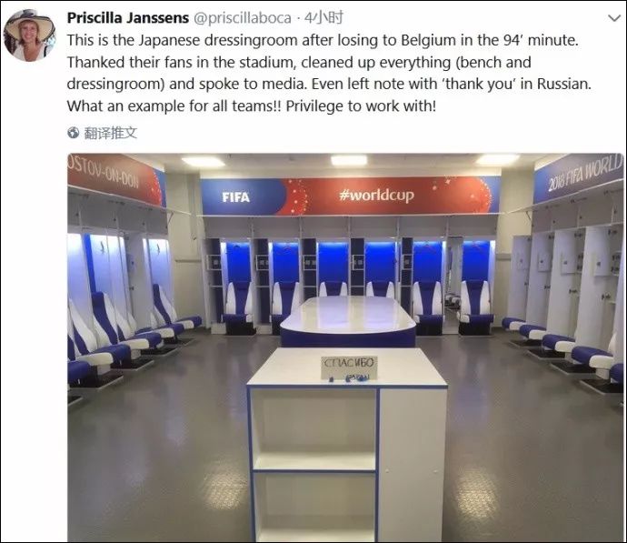 据观察者网查询,日本队更衣室这张图片最初是由欧足联场地总监、国际足联总协调员詹森斯发布在推特上的,但昨晚,这条推文和图片已经删除,原因未知。