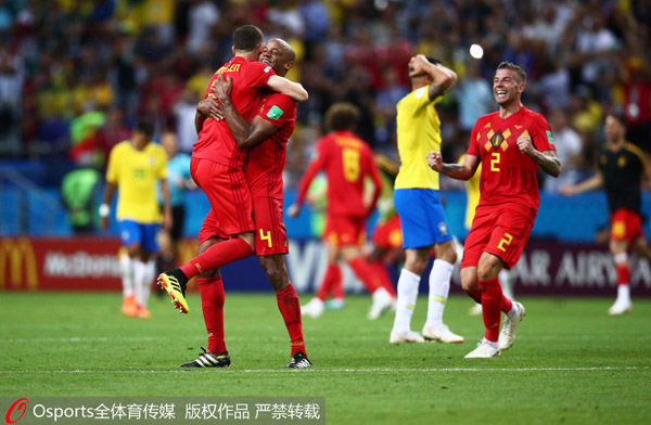 继德国和阿根廷之后,巴西成为了第三支倒在喀山体育场的豪门。欧洲新贵比利时凭借费尔南迪尼奥的乌龙和德布劳内的远射,2-1击败巴西,晋级2018年世界杯四强。