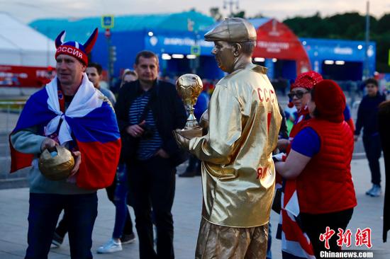 资料图:各国球迷聚集在卢日尼基体育场外狂欢,热情高涨。中新社记者 富田 摄