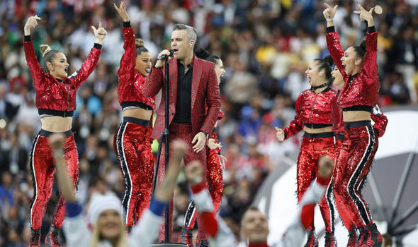 英国歌手罗比·威廉姆斯在开幕式上表演。