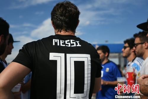 大部分阿根廷球迷穿着印有“10号梅西”的球衣。记者 田博川 摄