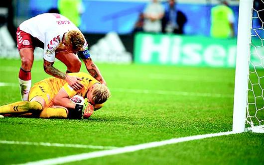 门将苏巴西奇成为克罗地亚队晋级的英雄,但全场最佳还不是他,而是出局者——丹麦队的门将小舒梅切尔。他不仅在点球大战中2次扑出对方的点球,还在加时赛最后时刻将对方球员摩德里奇主罚的那粒可能成为绝杀球的点球牢牢按在怀里。本场比赛,小舒的父亲、前丹麦队传奇门将舒梅切尔也来到了现场,电视镜头多次对准了这位曼联名宿。父亲节前一天,丹麦队小组赛首场1比0战胜秘鲁队,小舒梅切尔表现神勇,创下了连续代表丹麦队出战534分钟零丢球的新纪录,而他打破的正是他父亲1995年创造的连续470分钟不丢球的纪录,这堪称是一份特殊的父亲节礼物。