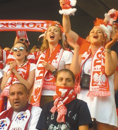 莫斯科斯巴达克体育场内,加油呐喊的波兰球迷。