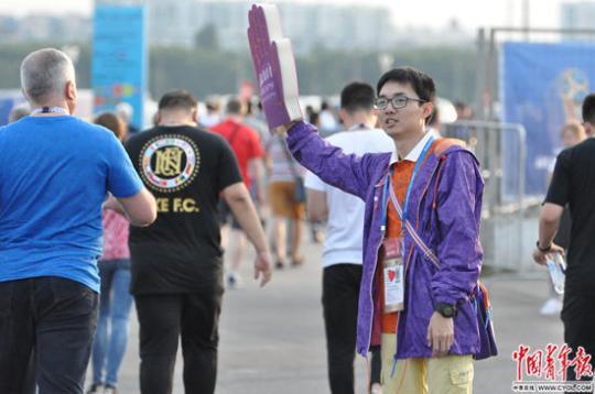 “大家预测可能会输,怕球迷闹事,所以我们躲在铁栅栏后,最好的情况就是待在警察身边。”徐琛对中国青年报·中青在线记者回忆。这场生死战在卢日尼基体育场举行,赛前已经下了几场急雨。作为体育场外进行观众引导的志愿者,徐琛和同伴要带着巨大的海绵手套和观众击掌,给观众指路,“天热的时候闷得慌,下雨就能重两斤,一击掌溅一脸水。”