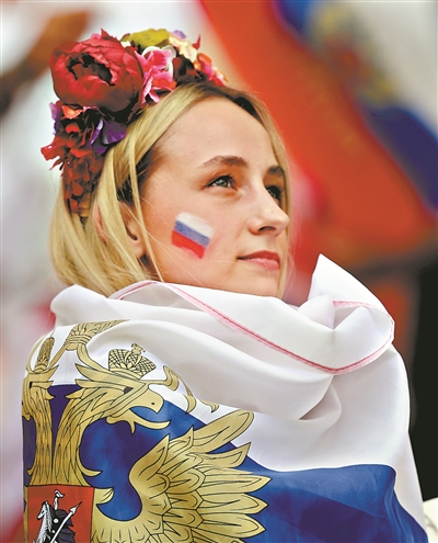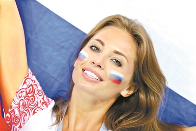 俄罗斯媒体评选出来的“最美女球迷”,上图为克拉萨维娜。 @新华社