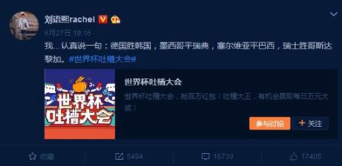 在微博上毒奶的不止刘语熙一人,有细心的球迷发现,微博上的球队势力榜竟然成为了“毒奶榜”,德国、阿根廷、葡萄牙、西班牙等支持率前几的球队竟然依次离开,得票多的球队大都率先出局。发现了这种现象的英格兰球迷刹那间“醒悟”过来,他们号召同伴投票支持英格兰的对手。在他们的“努力”下,哥伦比亚和瑞典竟然成功先后被“投出局”。