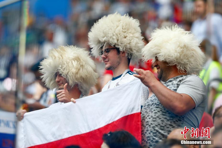 当地时间7月14日,俄罗斯世界杯三四名决赛举行,英格兰队对阵比利时队。开赛前,看台上热情的球迷格外抢镜。 中新社记者 富田 摄