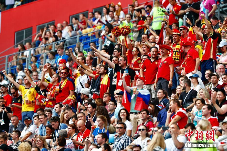 当地时间7月14日,俄罗斯世界杯三四名决赛举行,英格兰队对阵比利时队。开赛前,看台上热情的球迷格外抢镜。 中新社记者 富田 摄