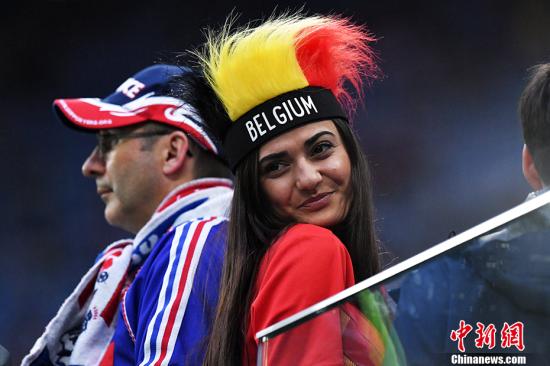 看台上一位比利时女球迷。中新社记者 田博川 摄