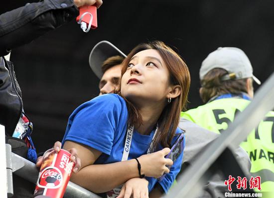 看台上的一位美女球迷。中新社记者 田博川 摄