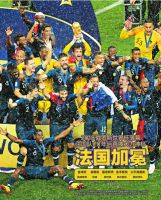 本报讯北京时间7月15日23时(俄罗斯当地时间18时),第21届世界杯决赛在莫斯科卢日尼基球场打响,法国4:2击败克罗地亚,时隔20年第二次夺得大力神杯。上半场,格列兹曼开出任意球,曼朱基奇顶进乌龙球。佩里希奇扳平比分,但他此后被判禁区内手球,格列兹曼操刀命中。下半时,博格巴和姆巴佩接连远射得手。法国队长洛里斯赠礼,曼朱基奇追为2:4。比赛后,憾失奖杯的克罗地亚核心莫德里奇拿到金球奖;姆巴佩获得最佳新秀奖;打进6球的凯恩问鼎金靴,金手套奖则属于季军门将库尔图瓦。