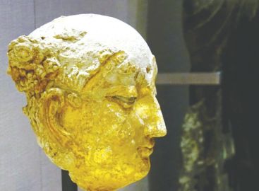 众所周知,中亚地区是欧亚大陆物质文明交流的枢纽,阿富汗也被誉为世界文明的“十字路口”,早在新石器时代,阿富汗盛产的青金石铺就了早期商贸交流和物质交换基础,印度河和阿姆河文明在这里迅速发展形成了聚落形态的早期国家。进入文字记载的历史时期后,波斯和希腊罗马文化艺术在这里交替发展,深刻影响了地区的信仰和世界观。印度传来的佛教造像艺术在这里融合当地文化后,传播至更远的东亚地区。阿富汗文物就集中展示了这些文明交融转化的过程,在一些时代和历史转折点上,阿富汗的文物总是最具有代表性,这次展览中,有一件贴金箔的人物头像格外吸引人们的目光。