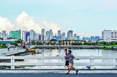 8月26日,人们戴口罩在菲律宾马尼拉户外慢跑。新华社发