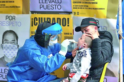 8月26日,在墨西哥首都墨西哥城,医务人员为一名儿童做新冠病毒检测采样。新华社发