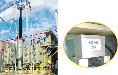 中国电科院在临沂特高压站试点应用了地震监测系统。图为安装于主变压器设备的地震监测站点。(资料图片)