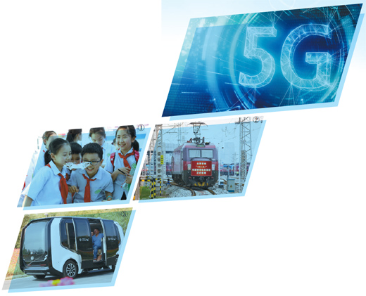 图①:5G无人机体验。图②:5G+AI铁路智慧机务系统。图③:5G微公交。资料图片