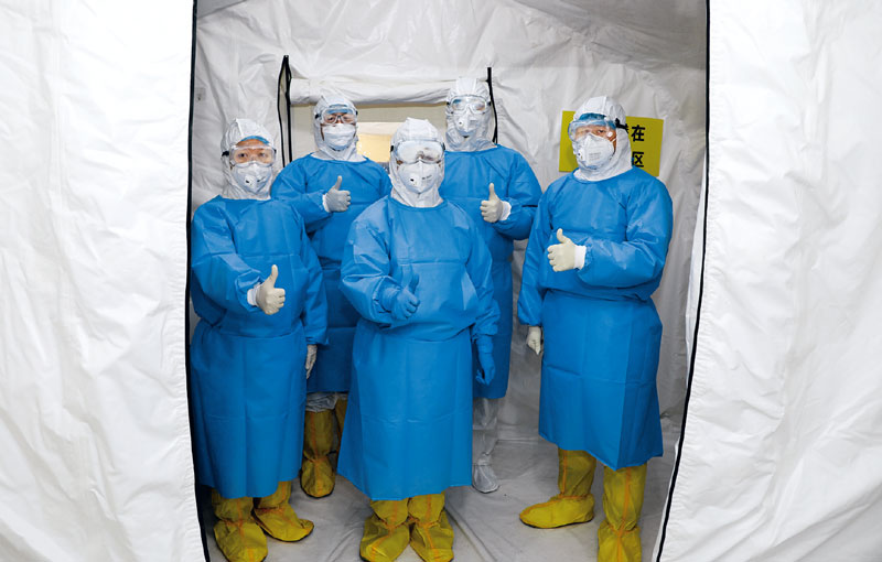 图为在武汉抗疫一线的军队医学专家组陈薇院士与检测组一起为武汉加油 军事医学研究院供图