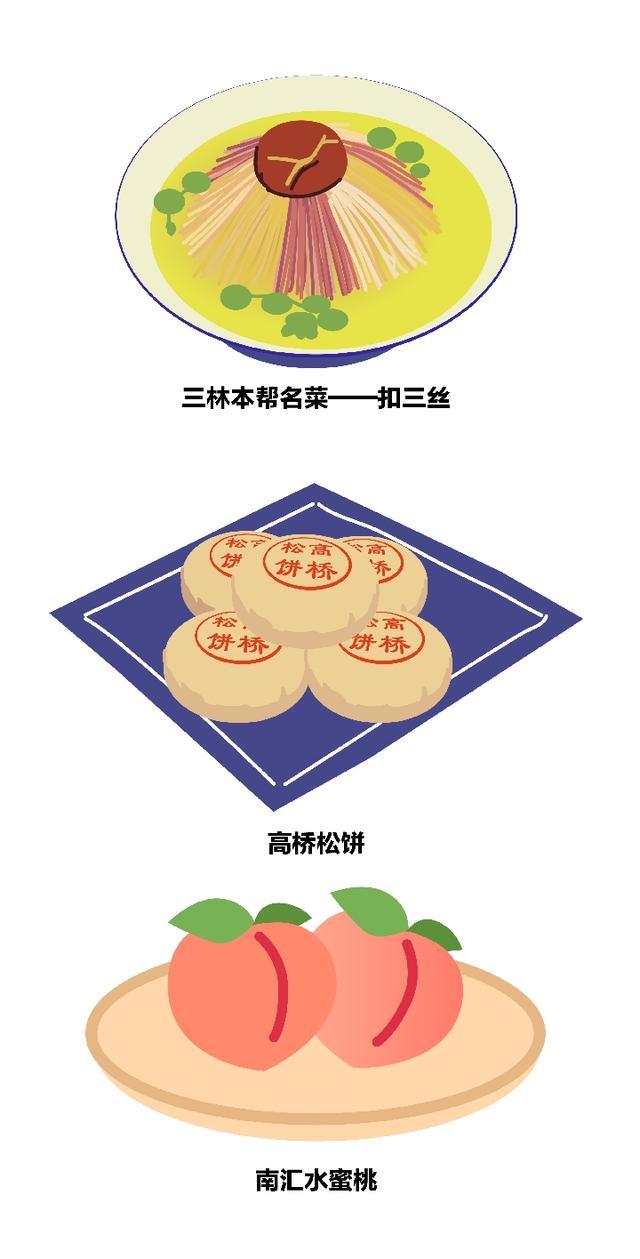 三林的本帮菜、南汇的水蜜桃、高桥的松饼……