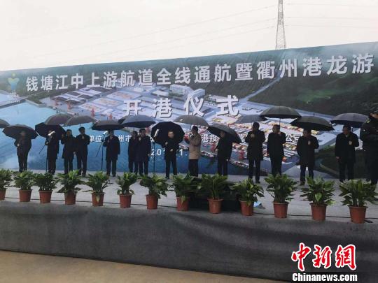中新网衢州1月2日电(郭其钰)钱塘江中上游航道全线通航暨衢州龙游港区开港仪式2日在浙江龙游举行。半个多世纪后,钱塘江中上游再次实现全线通航。目前全线可通航500吨级船舶,新航道通过能力由80万吨提高到2500万吨。