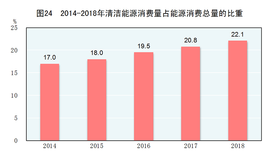 图24:2014-2018年清洁能源消费量占能源消费总量的比重 新华社发