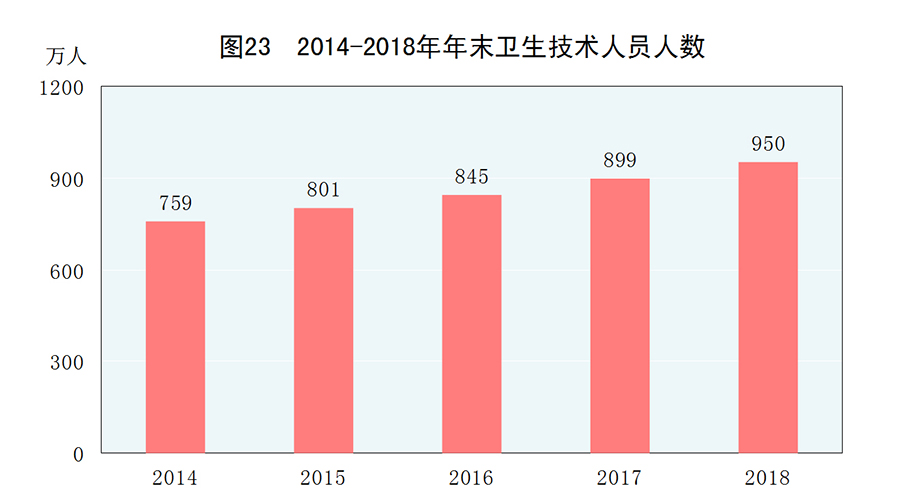 图23:2014-2018年年末卫生技术人员人数 新华社发