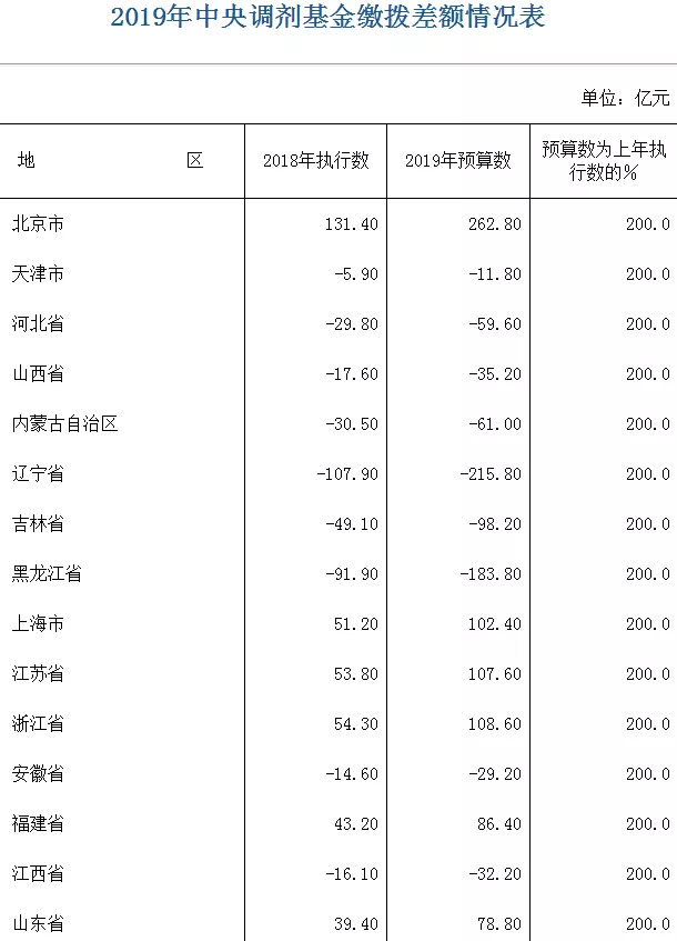 财政部数据显示,2019年中央调剂基金预算规模4844.6亿元,也就是说各地上缴资金合计4844.6亿元,中央也要将这4844.6亿元全部分给地方。