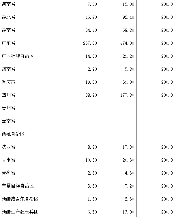 “受益”省份中,辽宁、黑龙江、四川、吉林、湖北、湖南、内蒙古、河北等地受益资金较多。其中,辽宁、黑龙江受益金额最多,分别为215.8亿元、183.8亿元。