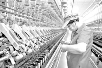 在位于固原市经济技术开发区的宁夏丰源纺织厂,工人在机台上忙碌。记者 冯开华 摄