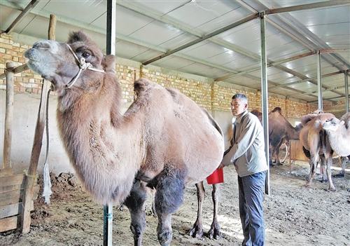 新疆乌恰县黑孜苇乡坎久干村村民马麦提图尔荪·阿不都卡地尔在挤驼奶。 本报记者 马呈忠摄