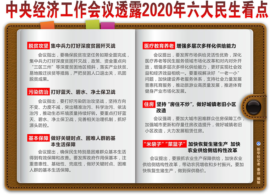 新华社北京12月12日电题:中央经济工作会议透露2020年六大民生看点