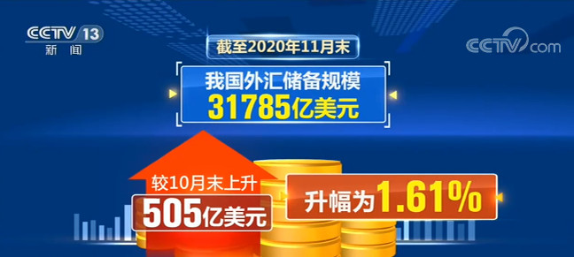 央视网消息:国家外汇管理局昨天(12月7日)公布,截至2020年11月末,我国外汇储备规模为31785亿美元,较10月末上升505亿美元,升幅1.61%。预期未来我国外汇市场将呈现基本稳定、双向波动格局。