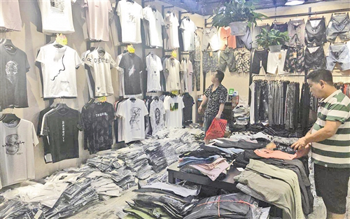 顾客在位于河北白沟新城的和道国际动批服饰广场选购服饰产品。 崔 振摄
