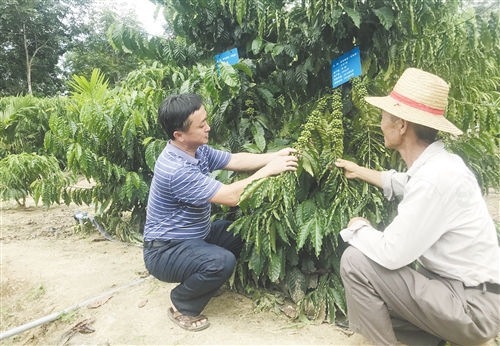 图为海南农垦大丰咖啡集团的技术人员正在指导农户种植咖啡。 记者 吉蕾蕾摄