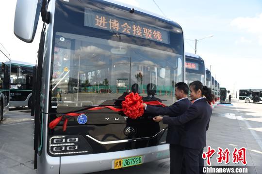 新型纯电动公交车亮相“进博会”接驳线。 张亨伟 摄