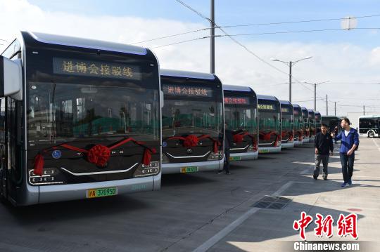 新型纯电动公交车亮相“进博会”接驳线。 张亨伟 摄