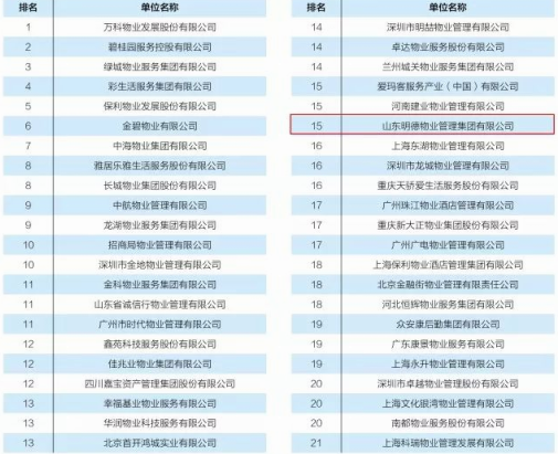 2018年10月15日,第二届国际物业管理产业博览会在深圳会展中心隆重开幕。与此同时,由中国物业管理协会主办的以“新时代 新使命 新作为 ”为主题的第四届中国物业管理创新发展论坛之主论坛在深圳会展中心5号厅隆重召开。会上,中国物业管理协会发布了2018年中国物业服务百强企业最新榜单,山东明德物业管理集团荣获物业服务企业综合实力全国第15名!