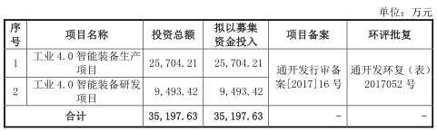 罗博特科拟于深交所创业板上市,公开发行不超过2000万股人民币普通股,共募集资金3.52亿元,工业4.0智能装备生产项目将使用募集资金2.57亿元,4.0智能装备研发项目将使用募集资金 9493.42万元。
