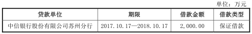 其中,短期借款分别为650.00万元、2500.00万元、1000.00万元和2000.00万元,占流动负债比例分别为10.10%、21.51%、3.82%和4.56%。截至2017年12月31日,罗博特科的短期借2000.00万元为向中信银行股份有限公司苏州分行的保证借款,期限为2017.10.17至2018.10.17。