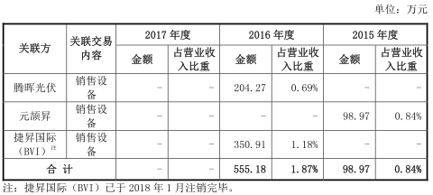 报告期内,罗博特科关联销售主要是向腾晖光伏、捷昇国际(BVI)、元颉昇销售设备等。2015年,罗博特科向元颉昇销售了98.97万元的设备;2016年,罗博特科向腾晖光伏销售了204.27万元的设备;2016年10-12月,罗博特科向捷昇国际(BVI)销售检测设备 350.91 万元。