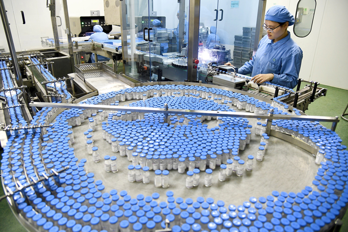 工人在齐鲁制药制剂生产线上作业 记者郭绪雷 摄