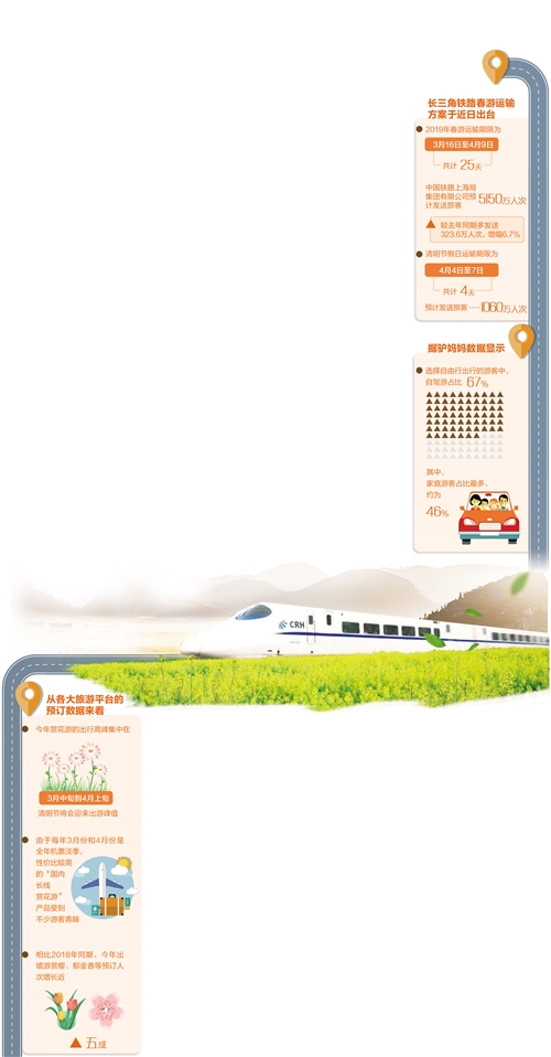 春色怡人淡复浓,南山花放北山红。随着春暖花开万物复苏,春季旅游成为消费者近期关注的热门话题。以赏花踏青为代表的国内国外春游产品火爆,也成为“春游经济”整体升温的注脚。此外,随着交通路网逐渐完善、旅游产品愈加丰富、景区管理规范成熟、商家服务推陈出新,今年春季旅游市场预计将迎来又一波高潮