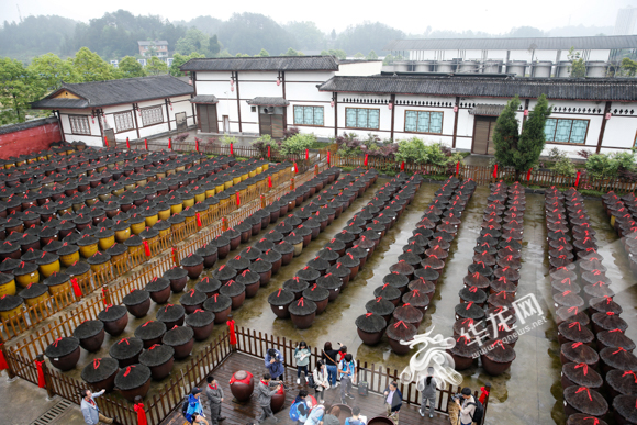 晾晒酱油用的大缸整齐排列在晒场内。华龙网-新重庆客户端记者 石涛 摄